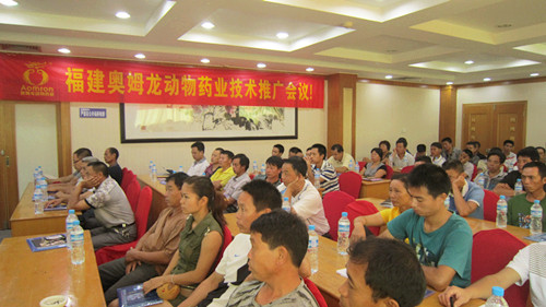 2012年8月23日,福建奧姆龍動物藥業有限公司營銷總監楊思齊和技術總監郭金權在連江開展《豬場夏防要點——如何提升母豬健康繁殖》技術交流會議,針對養殖戶面臨的問題進行面對面的交流。