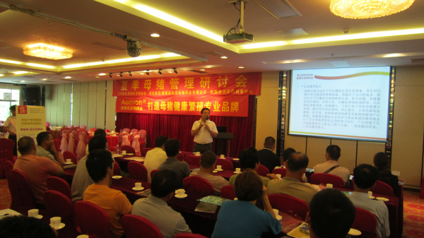 2013年6月14日,公司在廣東英德召開“夏季母豬管理研討會”暨公司技術推廣會,會議在董事長林振雁的主持下拉開了序幕。緊接著公司技術部總監郭金權老師針對“夏季產房母豬常見問題的原因及處理方案”進行了詳細的解說,會議現場座無虛席,互動氛圍熱烈。