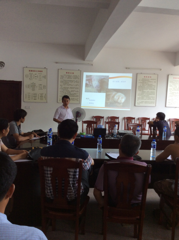 2014年7月19日,福建奧姆龍動物藥業有限公司福建大區團隊在龍巖永定湖山開展《夏季母豬的產后消炎與驅蟲》技術交流會議,為養殖戶提供專業的技術服務指導。盡管天氣十分炎熱,與會人數還是一下就超過了原本的安排,不得不臨時加座,才能滿足養殖朋友的熱情。