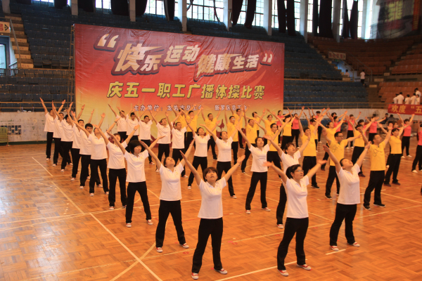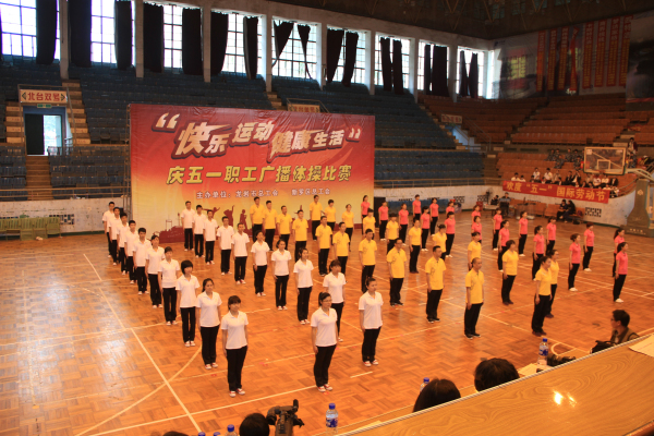 2013年4月27日星期六,為了進一步推進全民體育運動,龍巖市總工會與新羅區總工會組織二十多支代表隊參加第九套廣播體操比賽。經過連續幾周的加強訓練,我公司的二十多名員工身著統一的運動服,邁著矯健的步伐,和著鏗鏘的口號進入賽場。比賽現場,各代表隊隊員精神抖擻,整裝待發。廣播的音樂響起,隊員們踏著整齊的節拍,動作標準流暢,一展奧姆龍人飽滿的精神和健康的體魄。