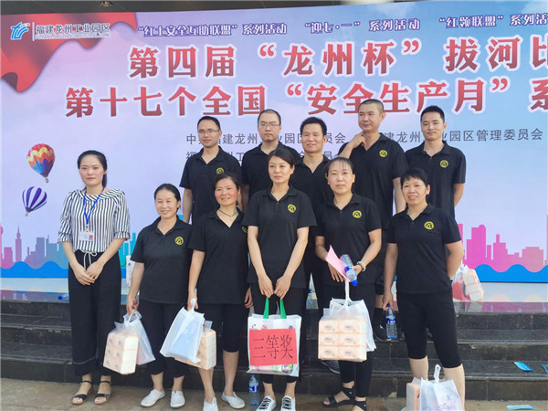 為豐富職工的精神文化生活,增強團隊凝聚力。我司于2018年6月28日上午組隊參加了由福建龍州工業園區舉辦的第四屆“龍州杯”職工拔河比賽。