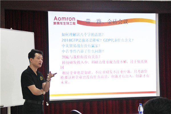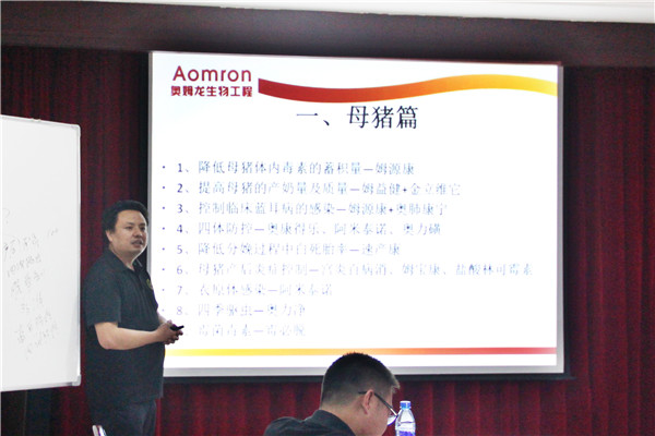由技術總監郭金權主講的《奧姆龍優勢產品介紹》,旨在讓各區域經理全方位地了解公司產品的優勢,及主要的豬場疾病種類,對各區域經理開發市場提供了強有力的技術保障,培訓深入淺出,博得陣陣掌聲。
