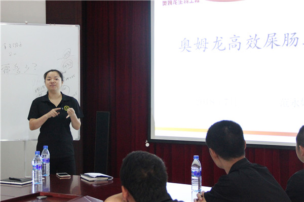 質量部副經理范永娣與銷售精英們分享《奧姆龍—高效屎腸球菌》的課程,范經理生動詳細的闡述了屎腸球菌的生物學特性、復合益生菌的作用機理及乳膏劑的應用效果,讓大家更加深刻的了解了公司微生態制劑產品的功能功效。