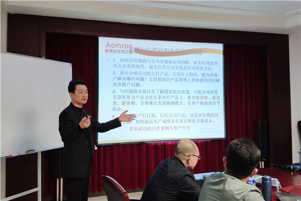 當前行業競爭加劇、養殖產業規模化加速、動保行業不斷升級的形勢,如何更好的適應市場環境,林振雁董事長給銷售精英們分析了未來獸藥行業發展現狀與趨勢。并明確了公司2019年銷售工作的整體思路、目標以及主要任務,并對2019年的銷售思路做了細致的剖析和規劃,今后行業管控力度會越來越大,禁用獸藥會越來越多,公司不斷適應市場環境,致力于打造安全、高效、環保的新產品,從產品創新提升綜合競爭力,為實現銷量穩步增長奠定了堅實的基礎。