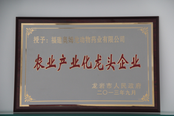 近期,福建奧姆龍動物藥業有限公司再次獲得由龍巖市人民政府授予的“農業產業化龍頭企業“榮譽稱號,這不僅標志著”奧姆龍“為樹立規模化大型企業起到了龍頭帶動及標桿作用,同時也是對奧姆龍人事業取得階段性成果的肯定!