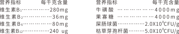 【原料組成】屎腸球菌、枯草芽孢桿菌、復合B族維生素、牛磺酸、果寡糖、純化水等。
