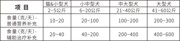 1、日常營養補充或促進采食:將營養粉單獨飼喂或和灑在主糧上拌喂,推薦劑量為體重的0.25%~0.5%;