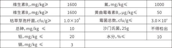 產品名稱:混合型飼料添加劑 硝酸硫胺(維生素B1)+核黃素(維生素B2)+枯草芽孢桿菌