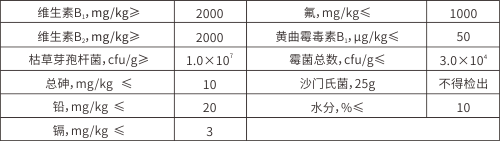 產品名稱:混合型飼料添加劑 硝酸硫胺(維生素B1)+核黃素(維生素B2)+枯草芽孢桿菌